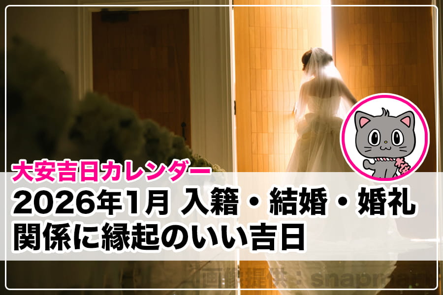 2026年1月に入籍や結婚、婚礼関係のことを予定している方は、ぜひ参考にして縁起のいい吉日をチェックしてくださいにゃん。
