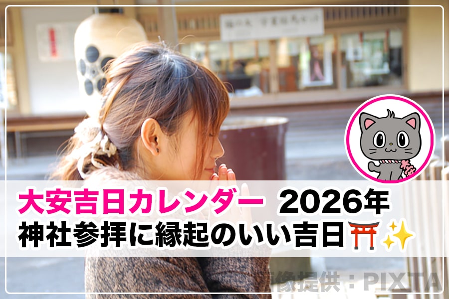 こちらのページで、2026年全体の神社参拝に縁起のいい吉日やそれぞれの吉日について詳しく解説をしています。ぜひご覧ください。