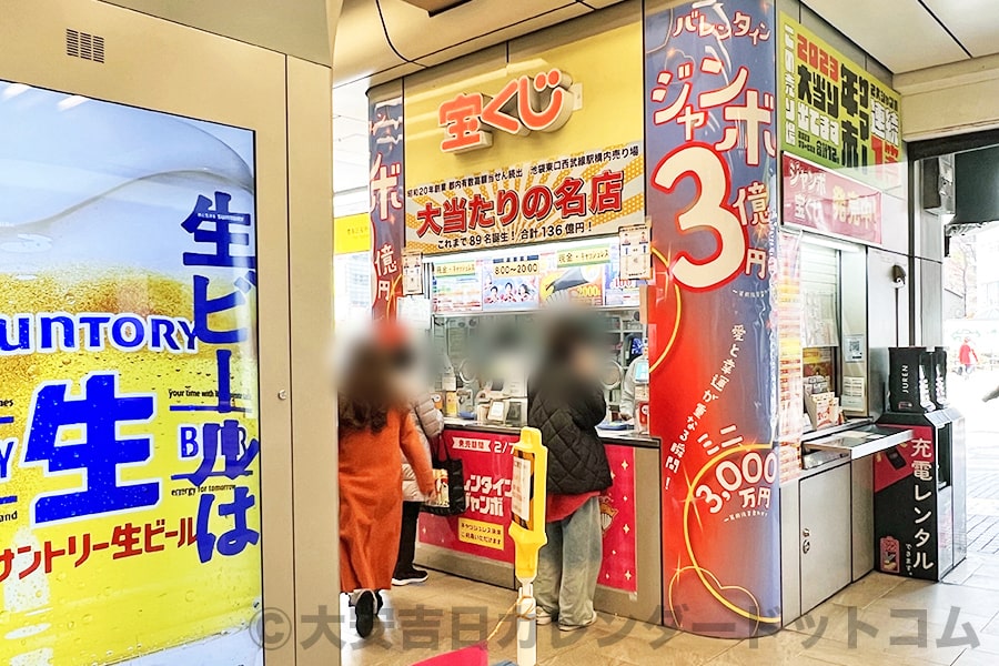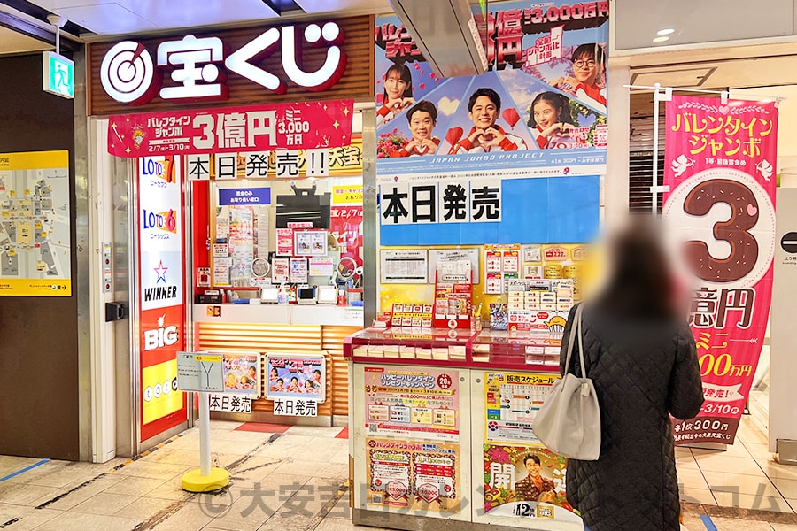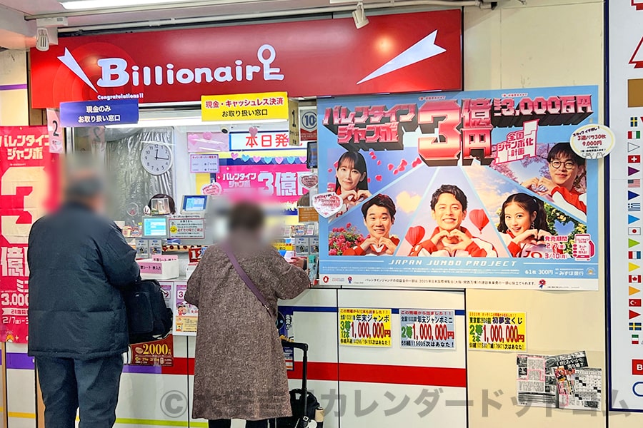 ※前年2025年バレンタインジャンボ宝くじ発売日の宝くじ売り場の様子(発売初日に撮影)|撮影:大安吉日カレンダードットコム