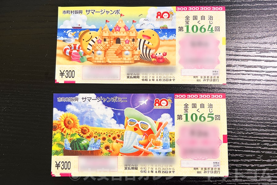 ※前年2025年のサマージャンボ宝くじとサマージャンボミニの現物(発売初日に実際に購入)|撮影:大安吉日カレンダードットコム