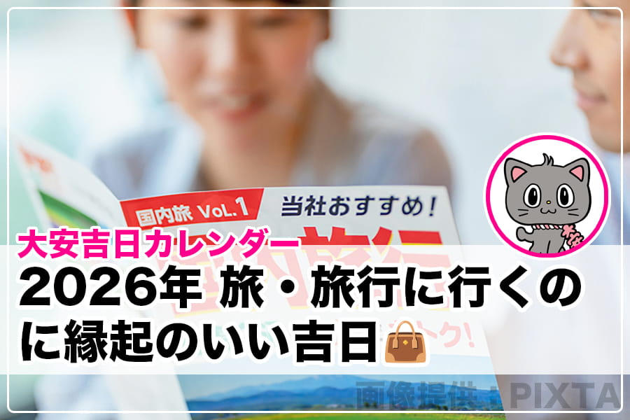 こちらのページで、2026年全体の旅・旅行に行くのに縁起のいい吉日やそれぞれの吉日について詳しく解説をしています。ぜひご覧ください。