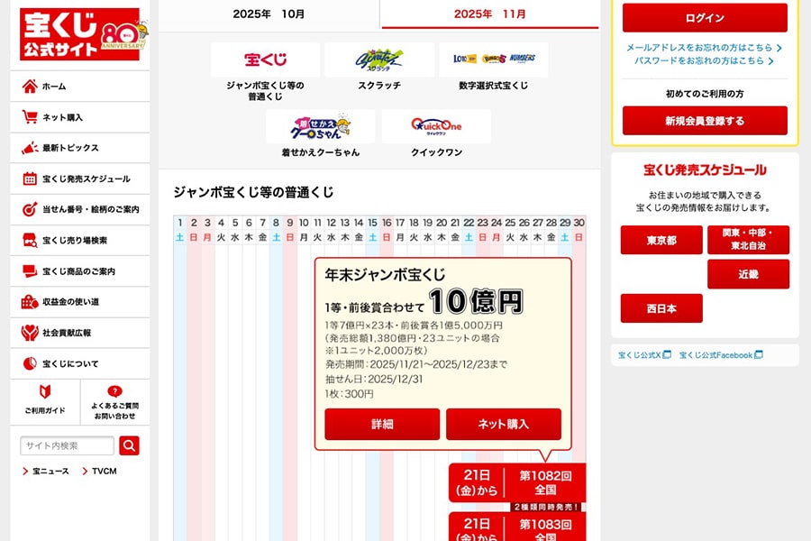 宝くじ公式サイトにて、2025年の年末ジャンボ宝くじの発売スケジュールが確定になりました。