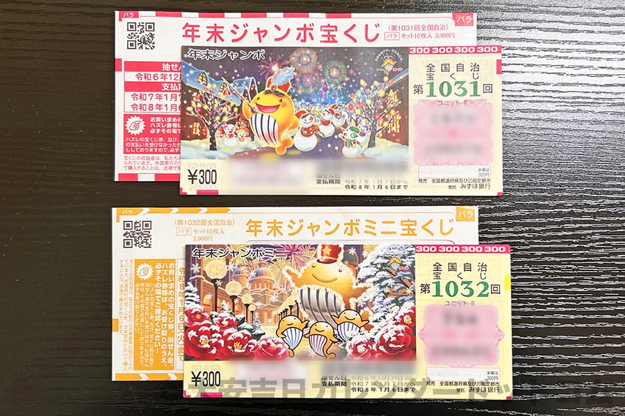 ※前年2024年の年末ジャンボ宝くじと年末ジャンボミニ宝くじの様子(2024年11月20日 発売初日に購入・撮影)|画像提供:大安吉日カレンダードットコム