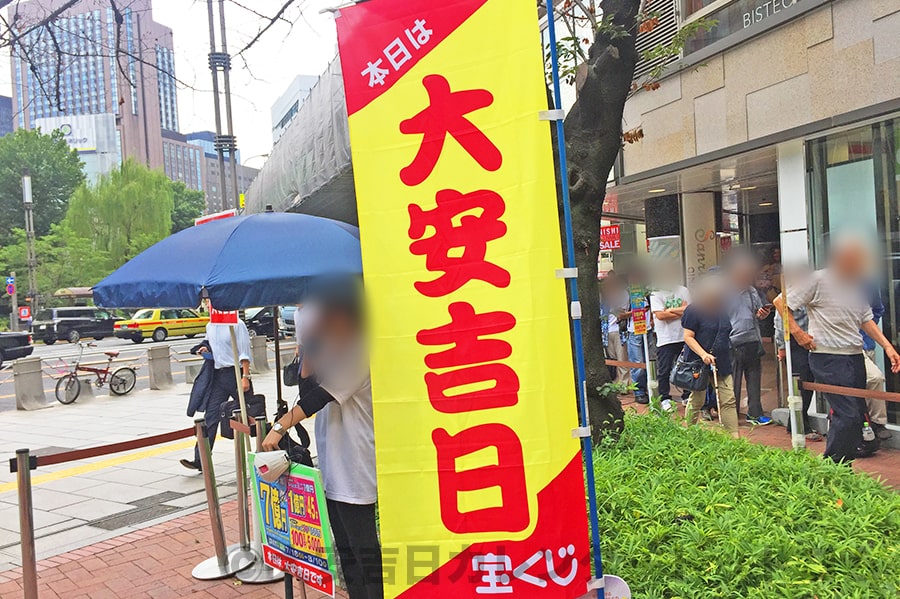 ※ジャンボ宝くじ発売期間中に宝くじ売り場に掲げられた大安吉日ののぼりの様子|画像提供:大安吉日カレンダードットコム