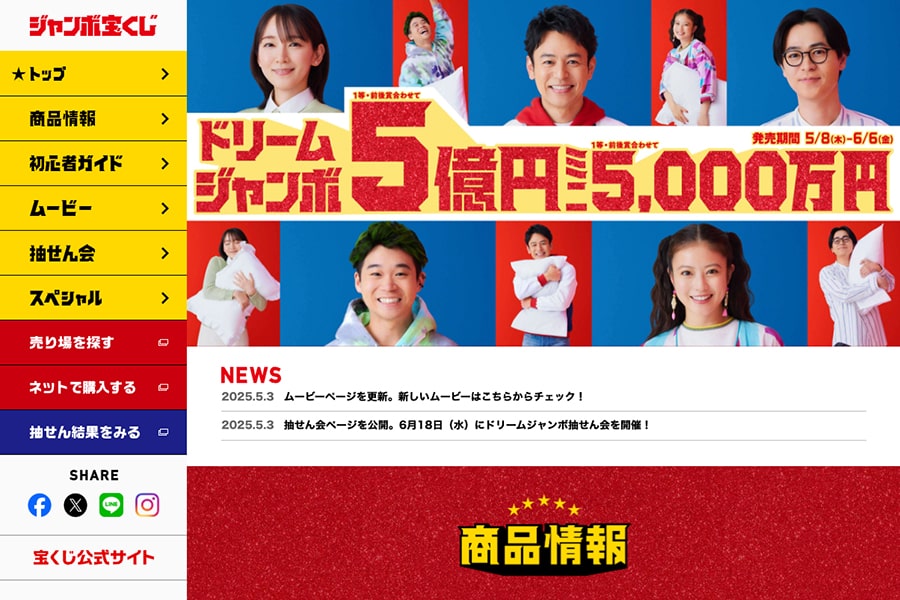 なお各情報は同ジャンボ宝くじの日程が確定し次第、更新します。