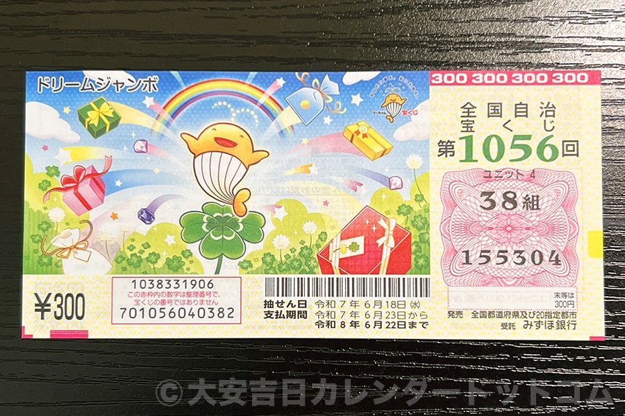 ※前年2025年のドリームジャンボミニ宝くじの実物(発売初日に購入)|撮影:大安吉日カレンダードットコム