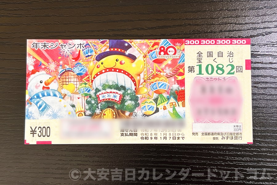 ※前年2025年の年末ジャンボ宝くじの様子(2025年 発売初日に購入・撮影)|画像提供:大安吉日カレンダードットコム