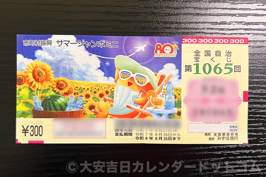 ※前年2025年の年末ジャンボミニ宝くじの様子(2025年 発売初日に購入・撮影)|画像提供:大安吉日カレンダードットコム