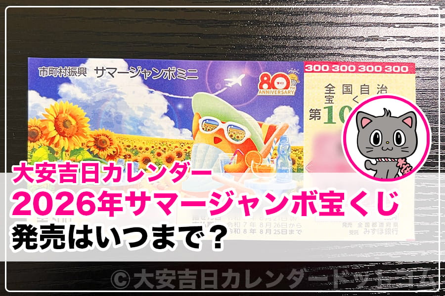 それら2026年のサマージャンボ宝くじとミニが発売がいつまで?(発売最終日は?)なのかについてお伝えするのにゃ。