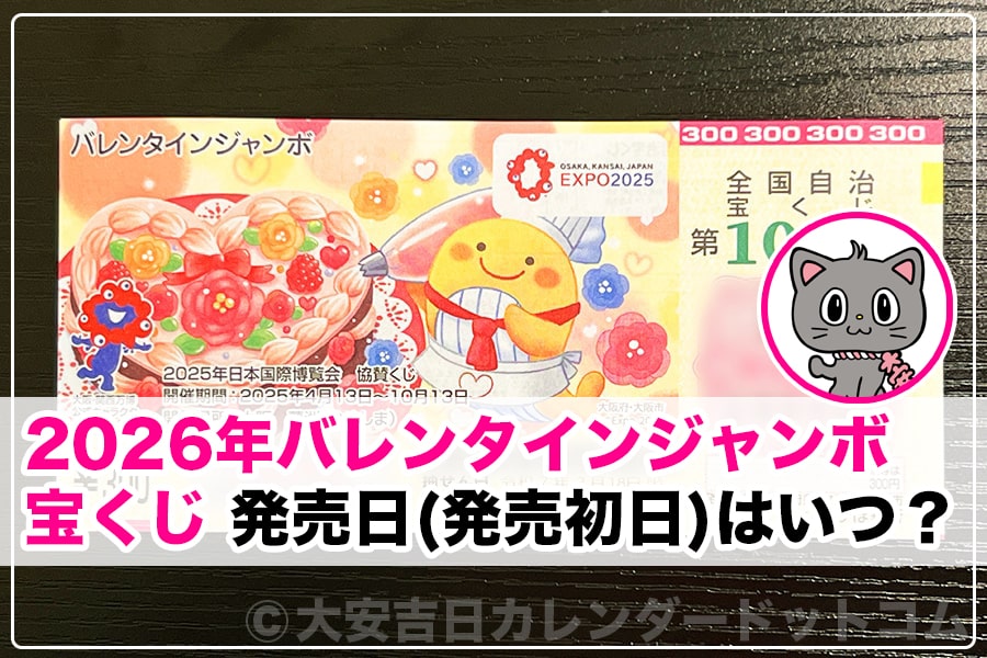 それら2026年のバレンタインジャンボ宝くじとミニの発売日(発売初日)がいつなのかについてお伝えするのにゃ。