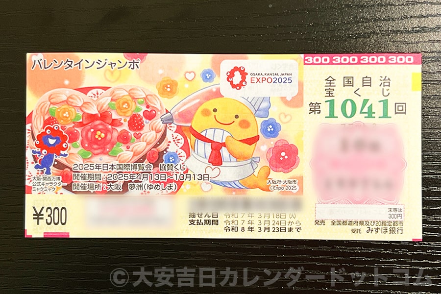 ※前年2024年のバレンタインジャンボ宝くじの様子(2025年 発売初日に購入・撮影)|画像提供:大安吉日カレンダードットコム