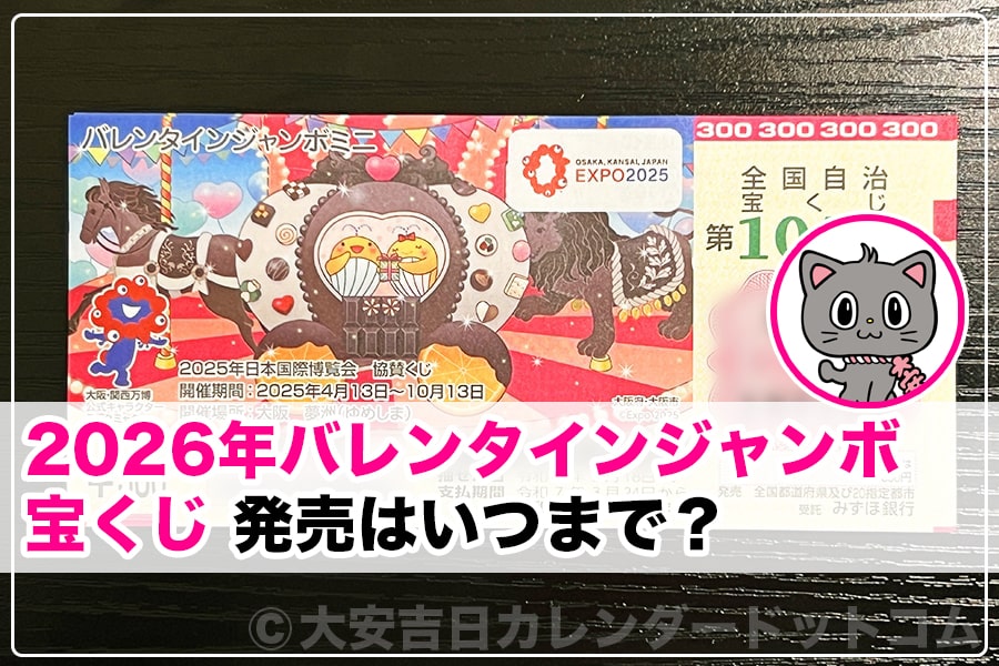それら2026年のバレンタインジャンボ宝くじとミニが発売がいつまで?(発売最終日は?)なのかについてお伝えするのにゃ。