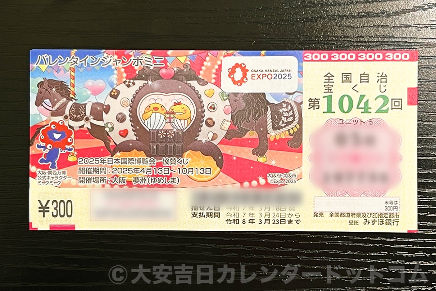 ※前年2025年の年末ジャンボミニ宝くじの様子(2025年 発売初日に購入・撮影)|画像提供:大安吉日カレンダードットコム