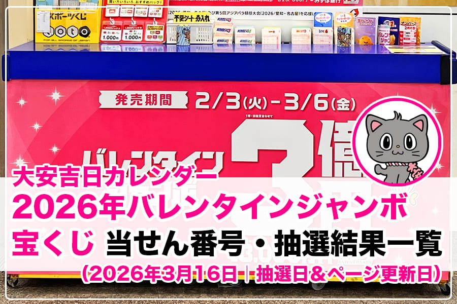 その2026年のバレンタインジャンボ宝くじとバレンタインジャンボミニの抽選が行われたら、当せん番号を更新・掲載してお伝えしますにゃん