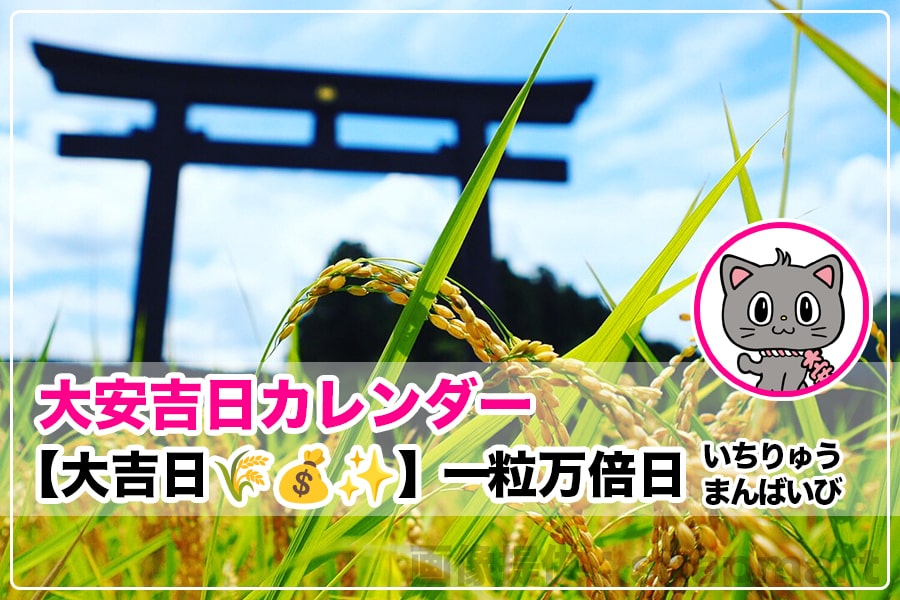一粒万倍日は、最近では本当によく知られるようになった吉日の一つで、日々の生活にも広く取り入れられてるにゃん